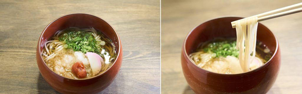 おでんをひとしきり堪能したら、〆に「みぞれ梅うどん」(650円)を注文。麺は100円引きでハーフサイズにもできるので、ついついおでんを食べ過ぎてしまっていても安心です。さっぱりとした後味と温かいだしが身体を芯から温めてくれますよ。