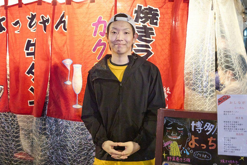 高田さんは福岡県大牟田市出身。大学時代に屋台「中洲十番」でアルバイトを始めたことをきっかけに屋台にしかない楽しさを知り、大学を中退して本格的に屋台の道へ足を踏み入れました。第2回屋台営業候補者公募に応募して、「博多屋台 よっちゃん」を構えたのが3年前。高田さんが20歳の時です。