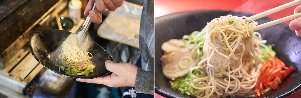 屋台発祥と言われるソウルフード「焼きラーメン」。お客さんと注文や会話を交わしながらも、細やかに目を掛けて炊き込んだスープが味の決め手
