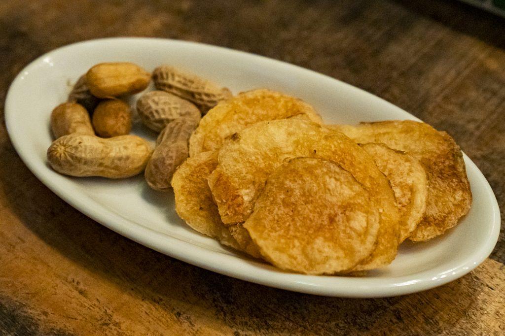 お通しにはピーナッツとメイドイン福岡のポテトチップス。これも「えびちゃん」の定番です。