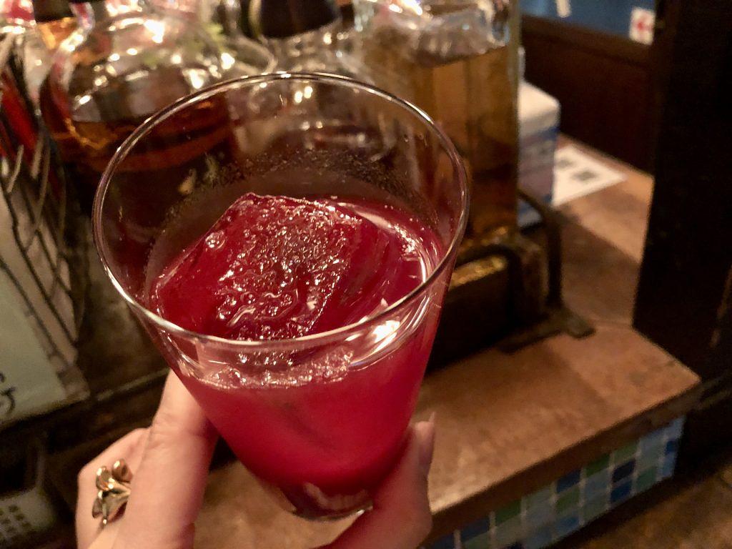 いただいた「クランベリージュースのモクテル」は、クランベリージュースがベース。甘酸っぱい果実感が特徴です。
