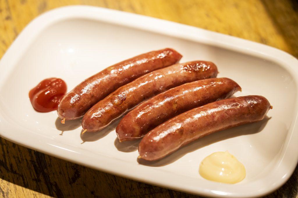 まずは「豊前産猪鹿ウインナー」(4本400円)から。大分県に近い、福岡東部に位置する豊前エリアの猪と鹿をミックスしたウインナーです。パリっと香ばしく焼き上げられたウインナー。一口かじるとジュワっと肉汁があふれ出し、同時にうま味が広がります。マヨネーズとケチャップも添えられていますが、何もつけないほうがシンプルに味わえるかも!