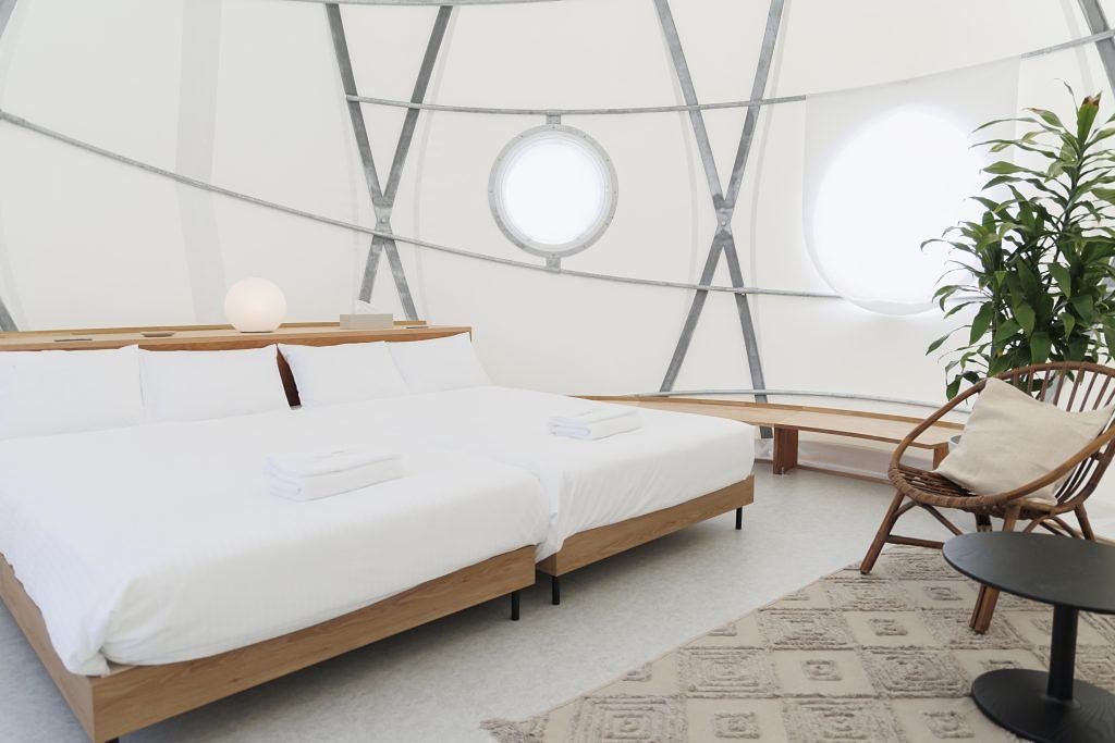 このほか敷地内には4~11月にオープンする全12棟のグランピングルームもあり、宿泊のシチュエーションに合わせて最適な部屋を選ぶことができます。