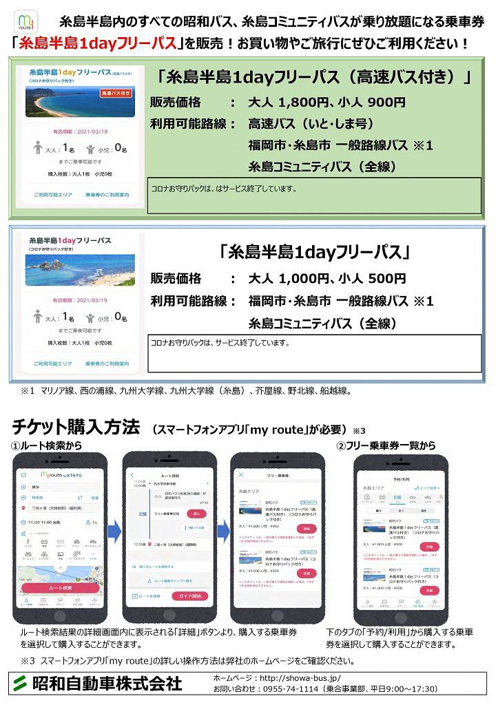 西の浦線をはじめ、マリノア線や糸島エリアまで一日に何度でも乗り降りできるお得な乗車券です。