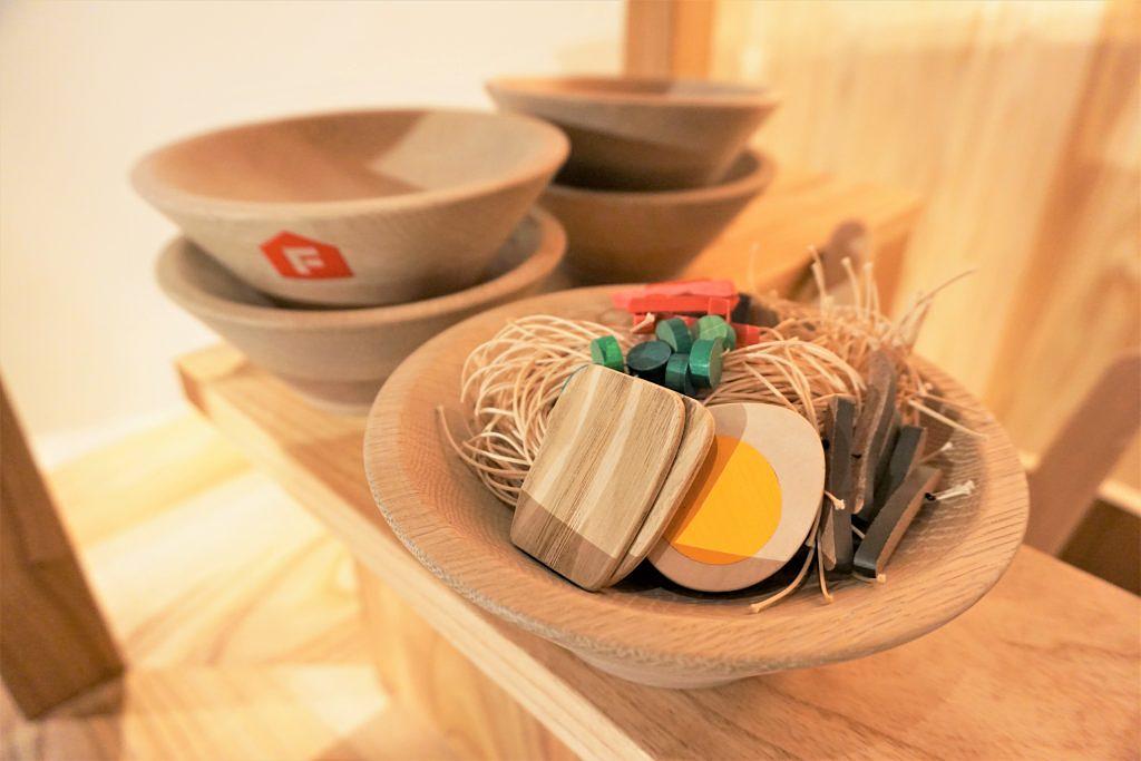 木で作られた福岡のラーメン屋台、お土産名物など面白いおもちゃがたくさんあります。