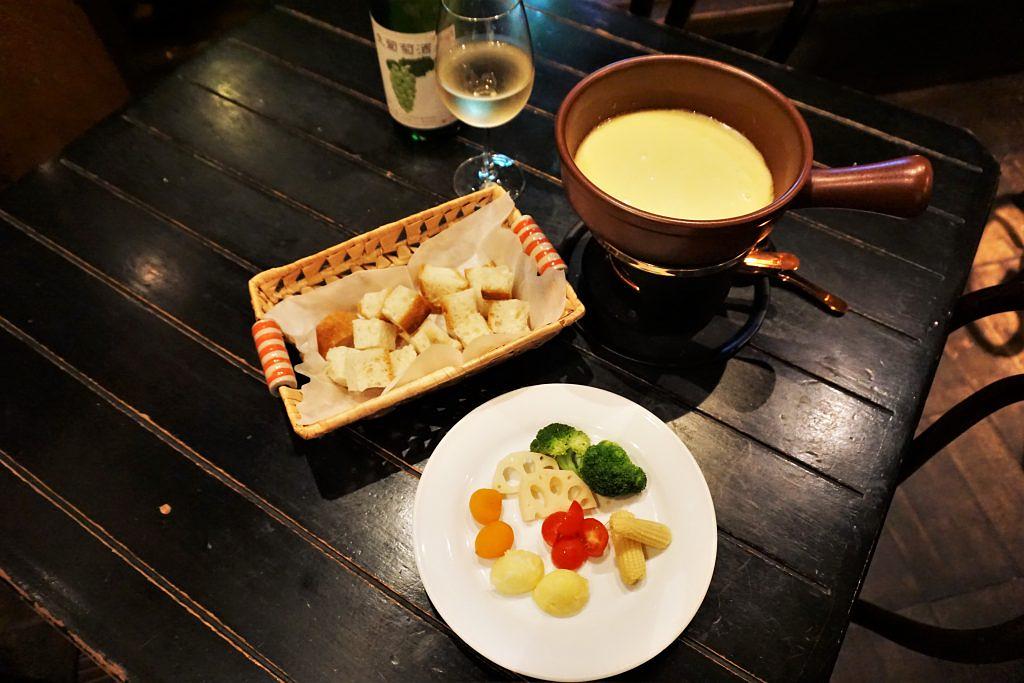二大看板メニューは、日本人の好みに合わせ数種類のチーズを配合したチーズフォンデュ(700円~)と、フレッシュでフルーティな生ワイン(グラス800円)。