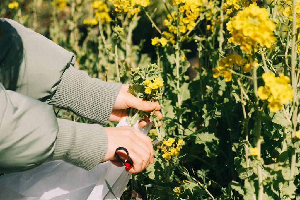 独自の農法でできた畑の土は、フッカフカ、旬の野菜は常時10〜20種ほど栽培されています。採れたての菜花を食べてみると、瑞々しさに思わずフリーズしてしまうほど、甘味と程よい苦味、ほんのりと潮水の塩味が口の中に残り、春の豊かさと食材の恵みをダイレクトに堪能できます。