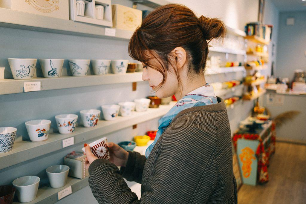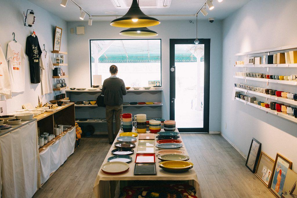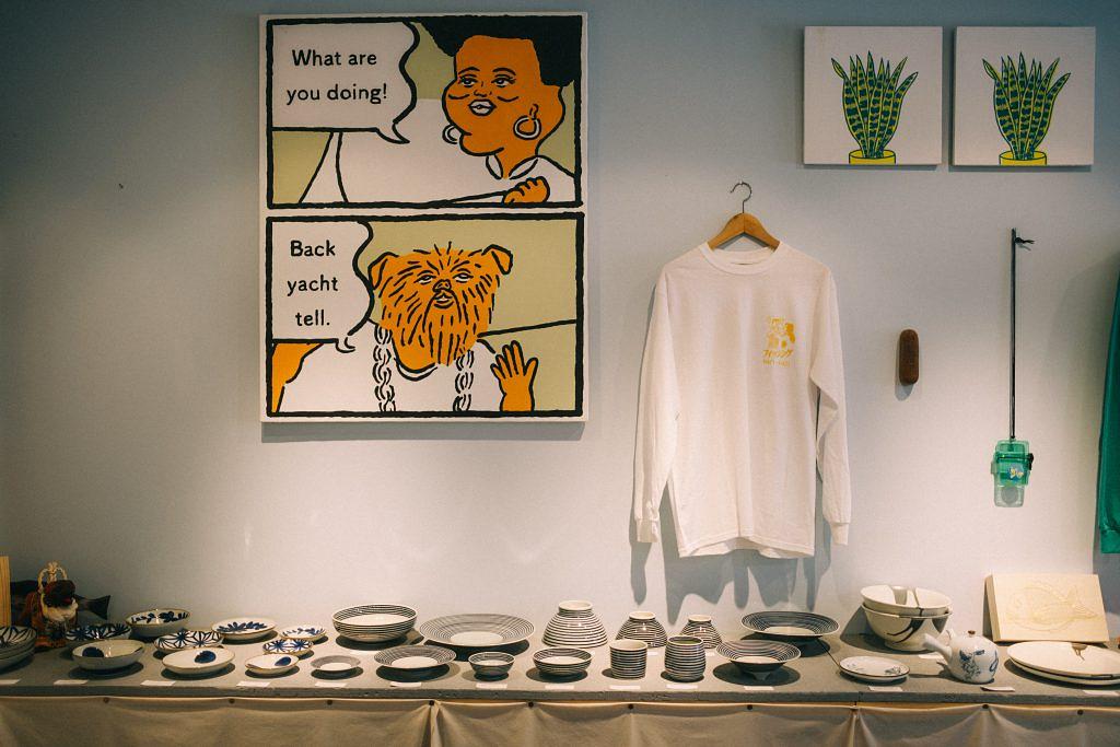 バスに揺られて10分ちょっと。続いて訪れる「HEY&Ho.」は、二見ヶ浦にあるハワイ風のリゾートモール「PALM BEACH THE GARDENS」の一角にあります。波佐見焼を販売する人気メーカー「マルヒロ」の姉妹店として2015年にオープン。店内に並ぶ波佐見焼は、シンプルでモダンなものから変わったデザインのもの、環境問題に警鐘を鳴らすものまで多種多様の品揃えがあります。また、イラストレーターとして福岡を拠点に活動しているNONCHELEEE(ノンチェリー)のアートグッズやセレクト雑貨も並び、老若男女が楽しめる商品でいっぱいです。長崎に行かずとも波佐見焼が手に入る数少ないお店なのでぜひ一度立ち寄ってみてください。