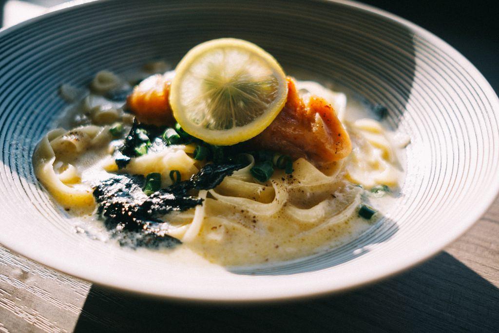 「パームビーチガーデンズ」から歩いて4分。目の前に美しい海が広がるカフェ「糸島茶房」へ移動します。福岡市中央区にある人気の「白金茶房」の姉妹店で、開放的な広々とした店内は、風当たりが気持ちいい1階テラス席、2階ではオーシャンビューが今日の疲れを癒してくれます。少し早いですが、夕暮れまで時間があるので夕食をいただきます。おすすめの料理は地元の西浦漁港で製造された無着色の“夕焼け明太子”を使ったこだわりのパスタ「西浦 辛子明太子パスタ」。カフェ時には福岡県産の小麦を使用した名物のパンケーキなど福岡の食材をふんだんに使用した料理がたくさん用意されています。サンセットまでもう少し、食事をしながら、ゆっくり過ごします。
