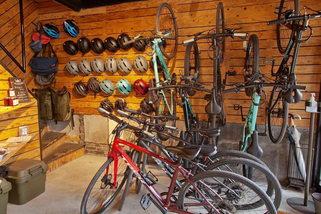 志賀海神社参道入り口にあるレンタサイクル&カフェ。選べる自転車の種類も豊富で、キッズ用バイクもあるのでファミリーでも利用できます。島を知り尽くしたスタッフの方から、島を1周するコースも教えていただけるので初心者でも安心です。