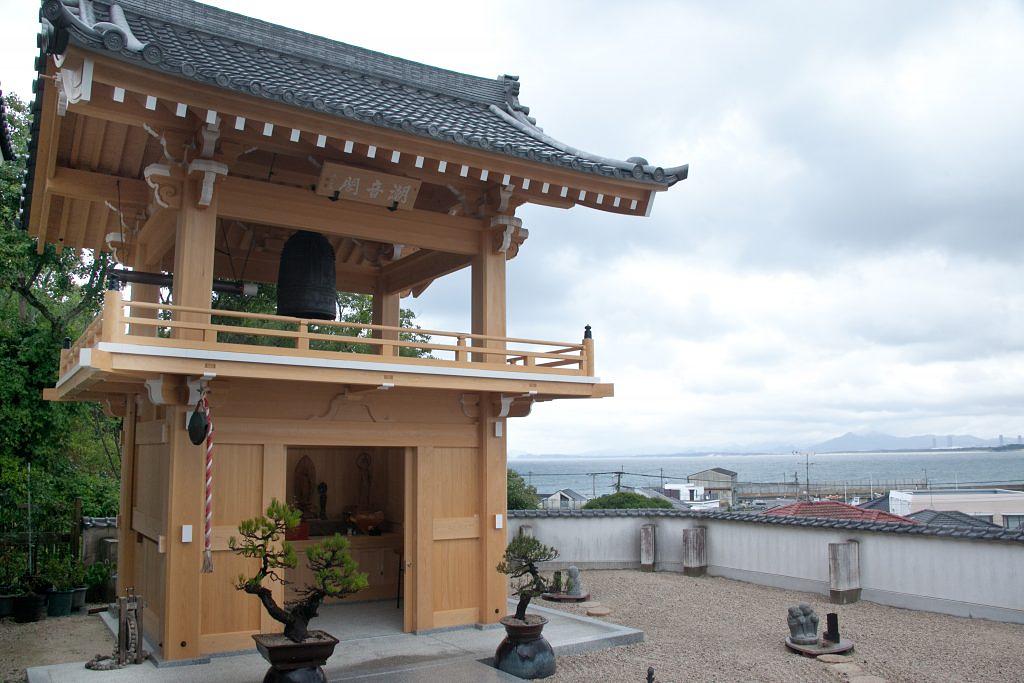 2023年10月に新設された梵鐘を吊るすための鐘楼堂。12時と17時に美しい鐘の音色とともに時刻を知らせます。海風と連動した音色はなんとも心地よい癒しの瞬間です。事前に申し出をしていれば、中を見学することができます。檜の香りに包まれた堂内に入るだけで心が安らぎ清められたような感覚です。そのまま本堂へ。