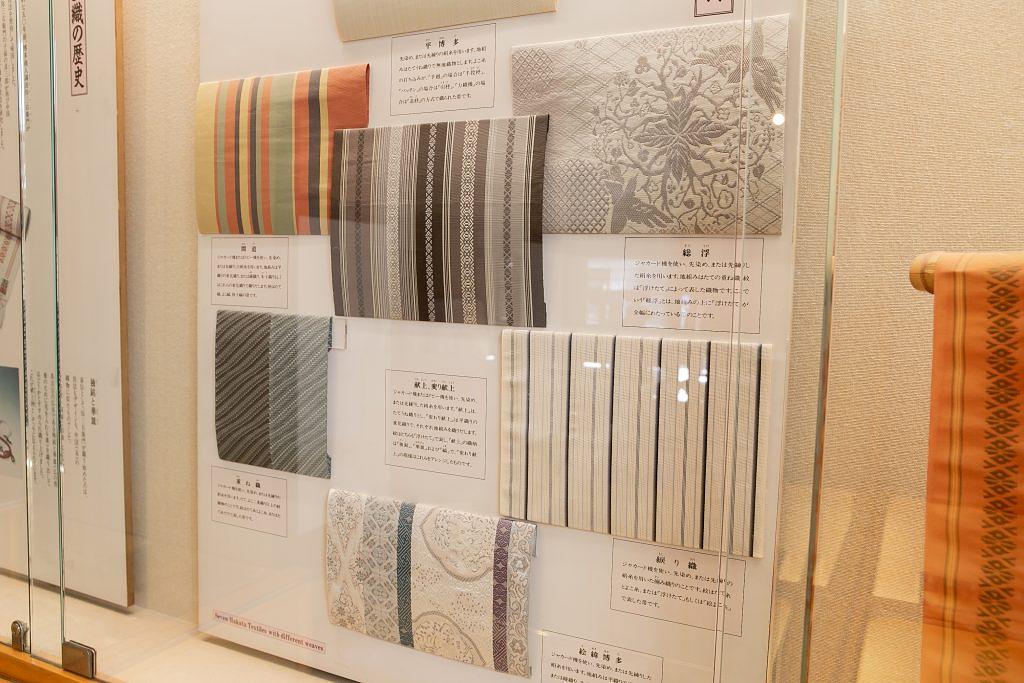 「博多町家」ふるさと館で必ず体験したいのが、伝統工芸体験です。観賞するだけじゃ物足りないという人のために、気軽に楽しめる体験プログラムが用意されています。町家棟では、工房部分で博多織の実演があり、「献上柄」の博多織も展示されています。