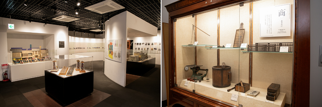 展示棟は歴史や伝統を知ることができます。1階では福岡の人々の暮らしや歴史、祭りなどを学ぶ展示コーナー、2階では伝統工芸品の制作実演を見学することができ、曜日によって博多張子、博多独楽、博多人形の絵付け体験と博多曲物の制作が体験できます。実際に体験することで、見るだけではわからない伝統の奥深さを感じることができるでしょう。