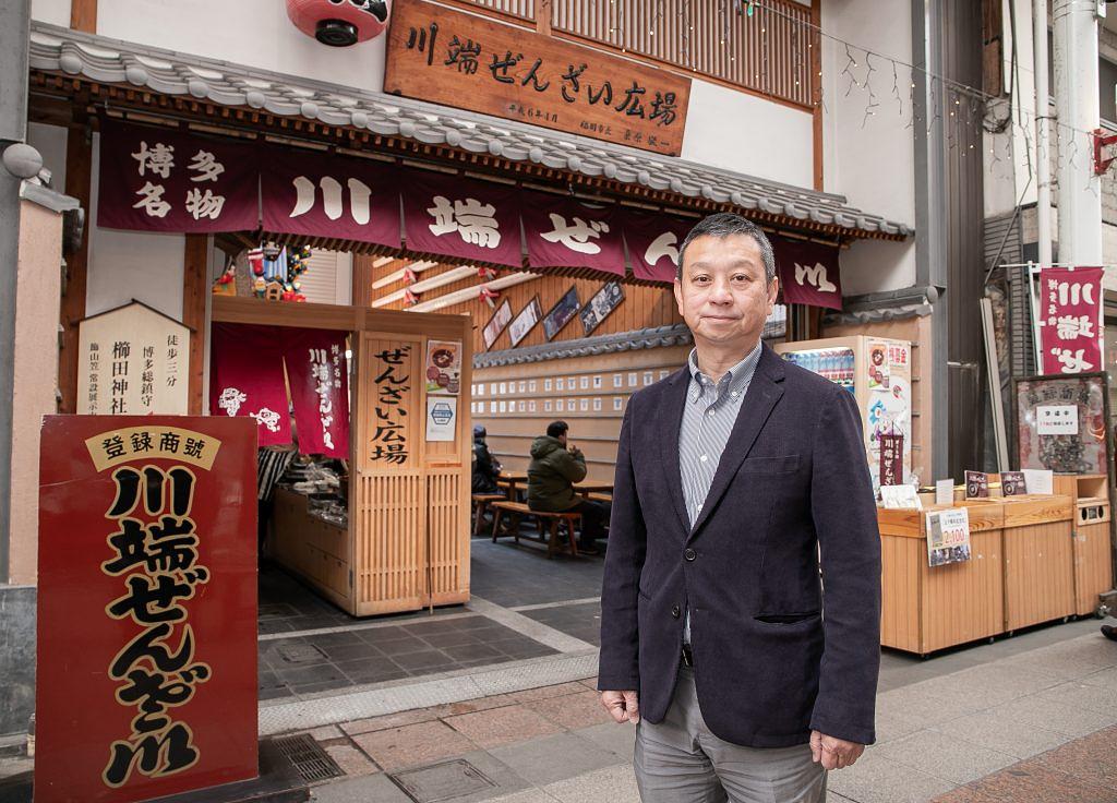 博多で最初に栄えた商業の町として、もっとも歴史ある商店街である「上川端商店街」。全長約400メートルのアーケードには、老舗や新しい店が溶け合う博多情緒が残る商店街です。「川端ぜんざい広場」は、博多の昔ながらの味を受け継ぎ、今でも日本一甘いといわれるぜんざいを提供する人気スポットとして地元、国内外の人々に愛されています。今回は上川端商店街の正木研次理事長に川端ぜんざいのお話しを伺いながら発祥や歴史をご紹介します。