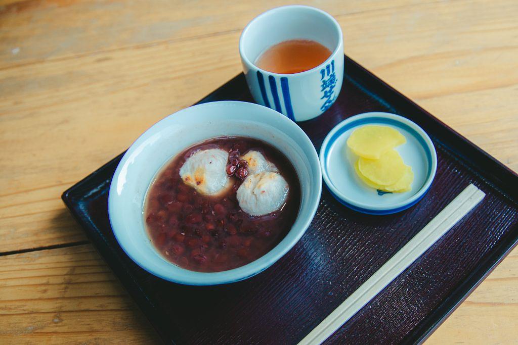博多の味として親しまれたぜんざいですが、今では観光客からも大人気で、11時の開店当初から行列ができるほどの盛況ぶりです。ぜんざいは、創業以来のスタイルでたくあんが添えられて、甘いぜんざいとの相性もぴったり。ぜんざいに入っているふわふわのお餅も絶品です。
