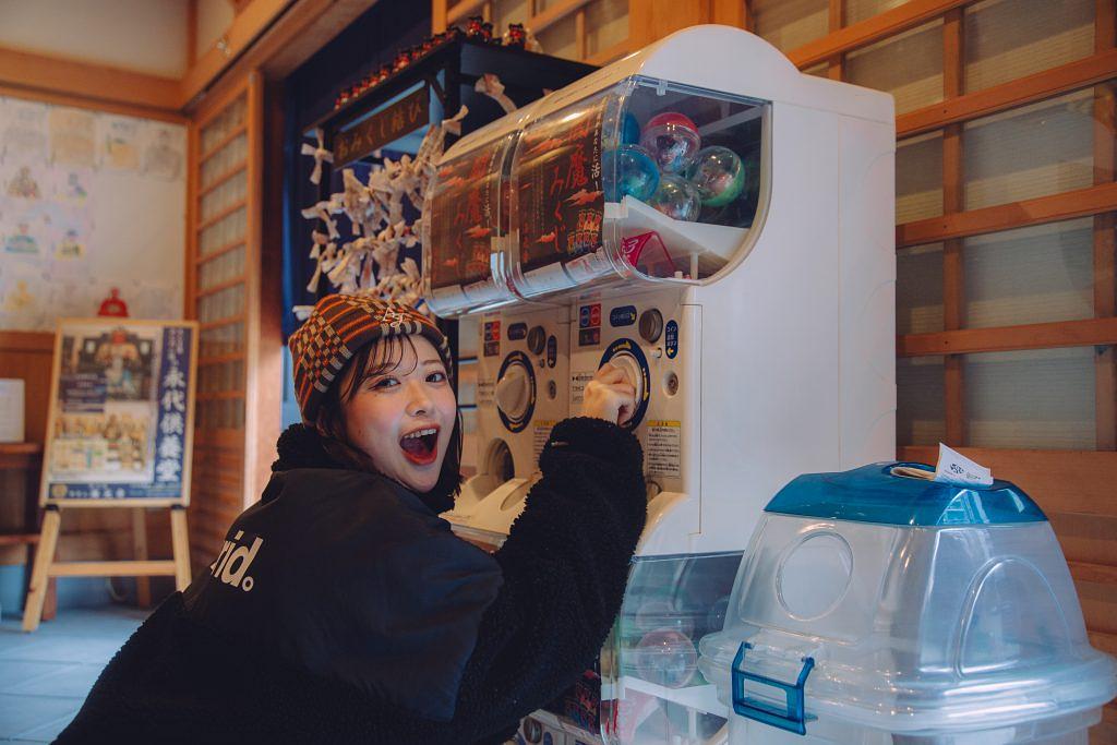さらにお堂の入口には、一風変わった楽しいおみくじも設置してあります。閻魔様のお言葉が込められている「閻魔みくじ」です。それもお寺ではめずらしいガチャガチャ形式のおみくじで、なかには60分の1の確率で当たる大大吉の金色閻魔様が隠れているようです。