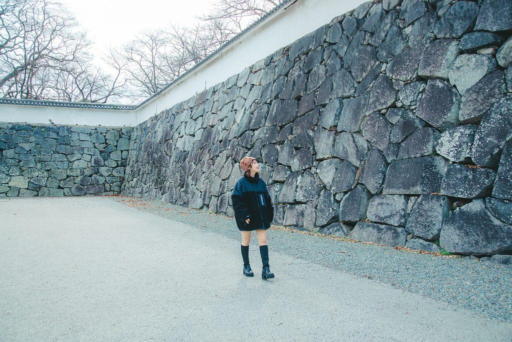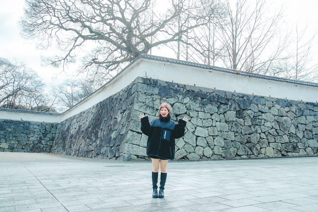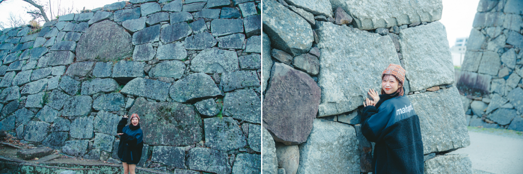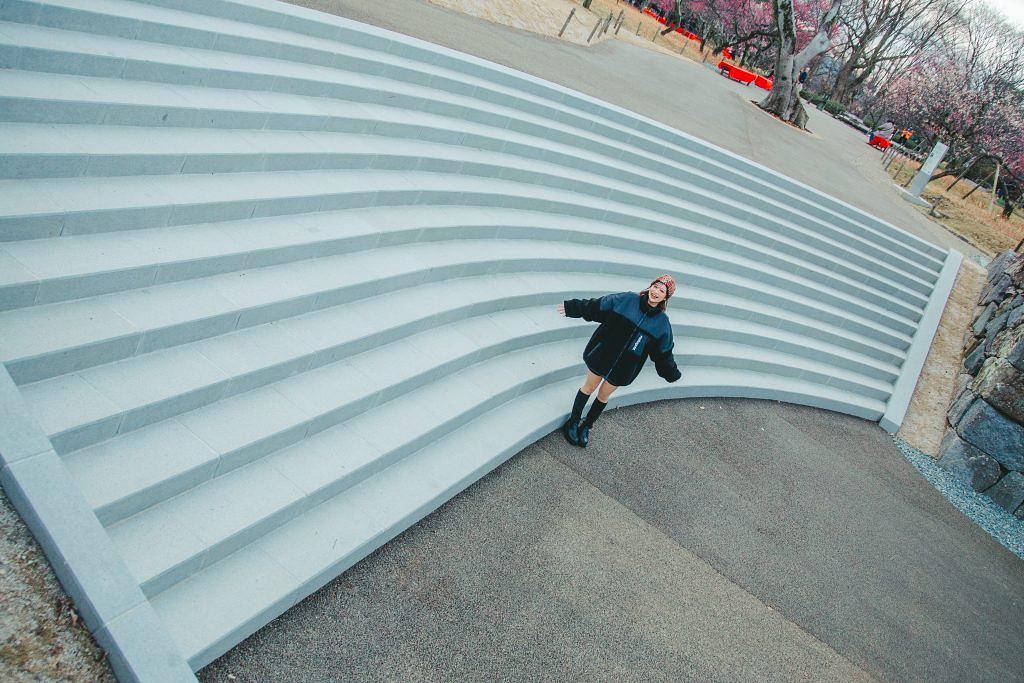 ひと際新しいこの階段は「扇坂」と呼ばれ、2023年から始まった園内整備の一環で、2024年に入って完成されました。駅のロータリーにあるような現代的な階段は、わたしたちにとっても馴染みやすい造りに見えます。築城初期からあったとされ、その名の通り扇を広げたような形で再現されたそうです。このように福岡城では保存や整備を進めていて、元来の城の姿に近づいて魅力ある場所になっています。