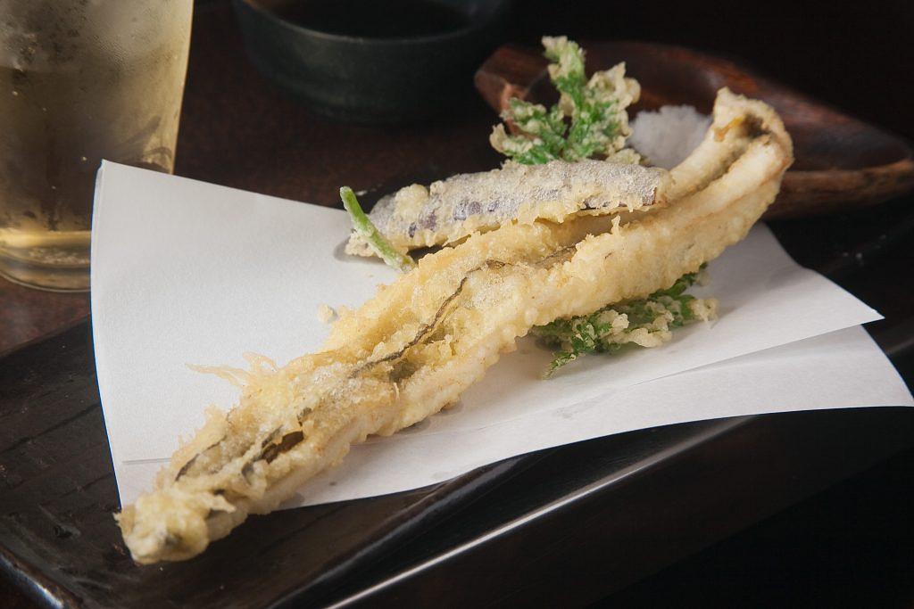 店主イチ押しの対馬産、アナゴの天ぷら1,000円