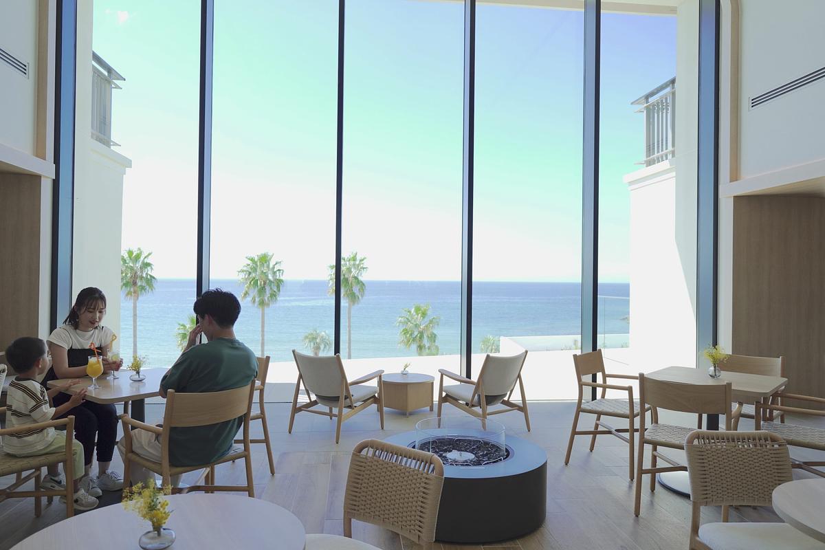 70席を超えるフロア席には、ほとんどの席から玄界灘を眺められる大きな窓が設置されています。
