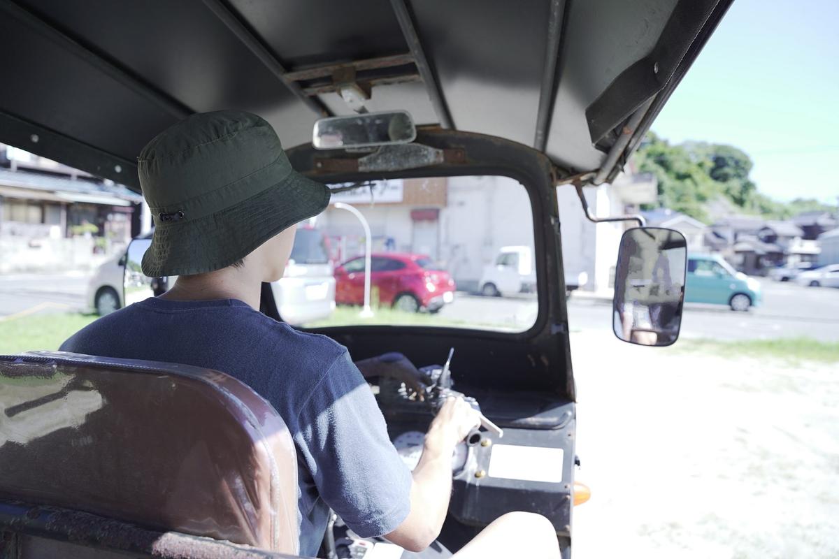 まさに大自然を全身で感じられるスポットがあると聞き、唐泊漁港で待っていると、そこに現れたのはトゥクトゥク!