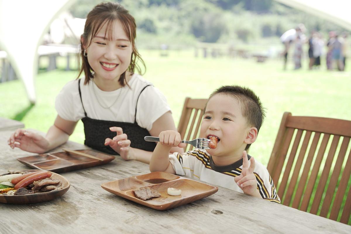 その一つが、手ぶらで訪れることができる日帰りBBQプラン。BBQコンロも炭も食材も、全て施設が準備をしてくれています。気軽に訪れて、いつもより大きな空と生き生きとした芝生を目に入れながら、大自然でのBBQを楽しむことができます。