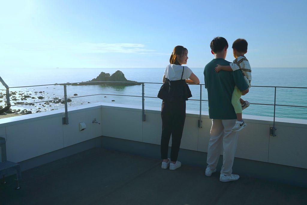 観光名所である「桜井神社二見ヶ浦鳥居」と 「夫婦岩」も堪能できるこの屋上。絶景を眺めながら家族での特別な時間を振り返り、旅を締めくくるに相応しいスポットです。