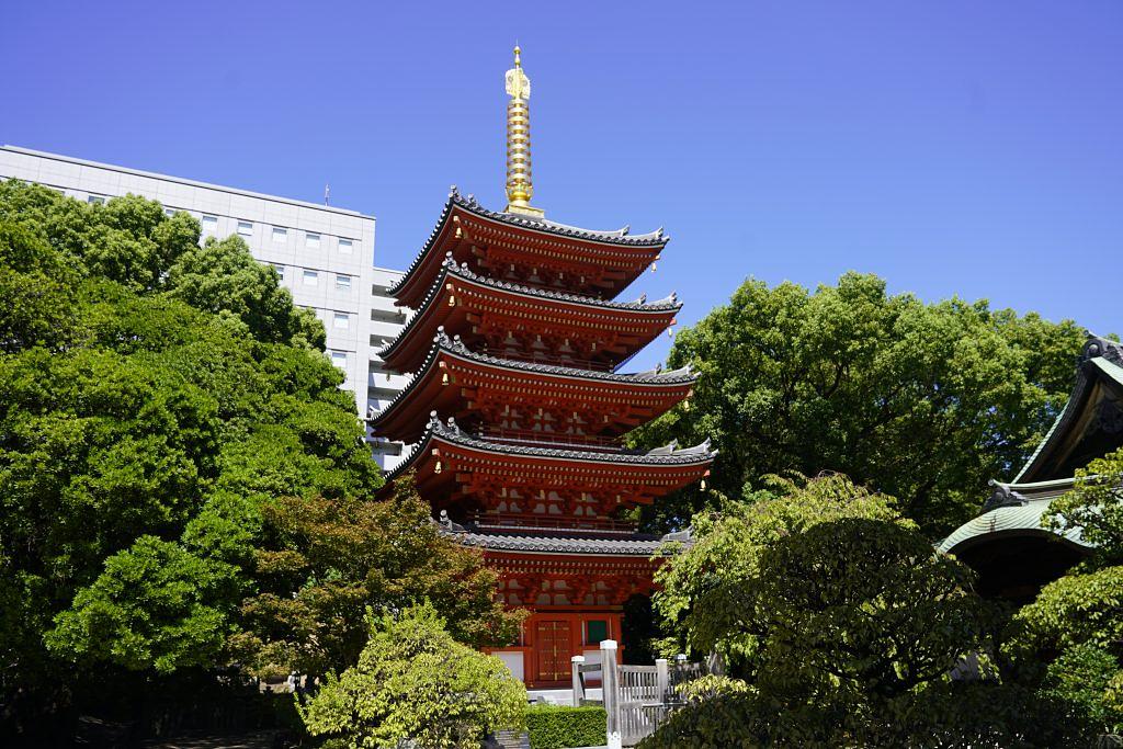 東長寺の五重塔は、博多の街のシンボルとして親しまれており、その優美な姿は多くの観光客の撮影スポットとしても人気です。境内には福岡藩主黒田家二代忠之、三代光之、八代治高の墓所もあり、福岡藩とのつながりを物語っています。