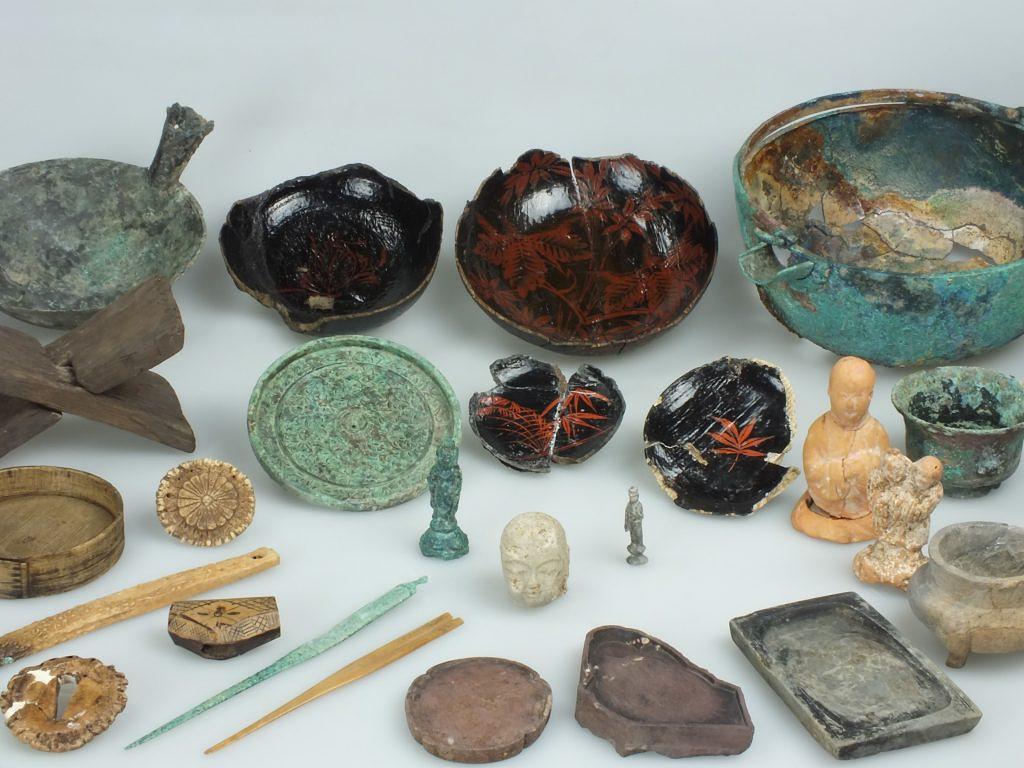 博多遺跡群で発掘された資料の数々。当時の人々の生活の様子を復元するヒントになる。(福岡市埋蔵文化財センター所蔵)