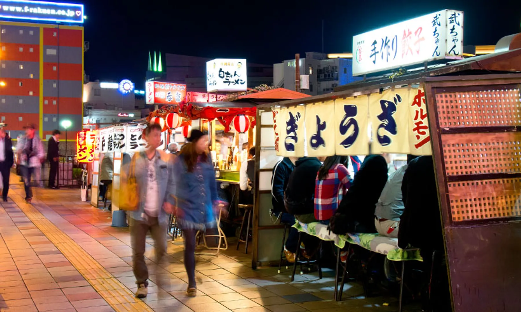 夜になるとカラフルなのれんを掲げた屋台約100店舗が街のあちこちに。ラーメンはもちろん、おでん、餃子や焼き鳥、天ぷらなどオリジナルメニューが豊富に楽しめます!屋台で博多の人の温かさに触れれば、あなたも福岡通の仲間入り。