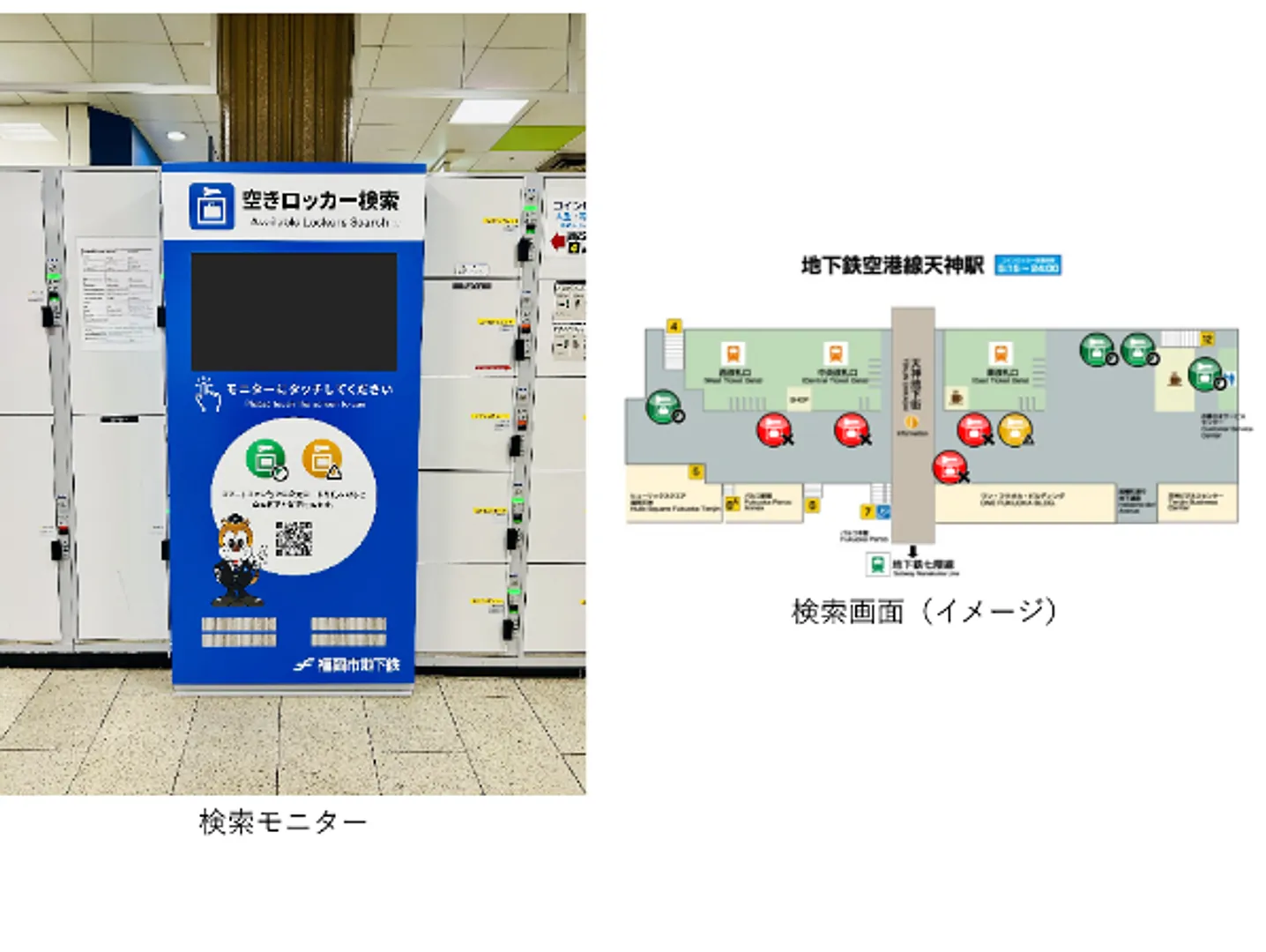 ▶ 検索モニターで、天神駅・博多駅のコインロッカー空き状況をリアルタイム表示