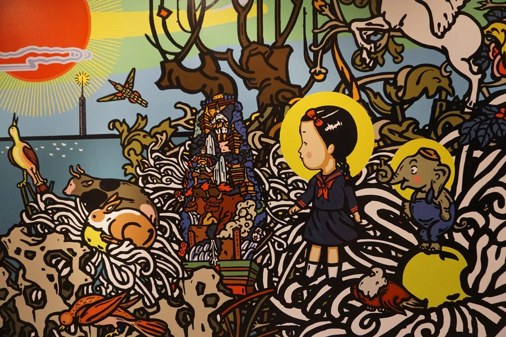 ブー・ホァさんは2014年に開催された「第5回福岡アジア美術トリエンナーレ」に参加した際、福岡に滞在もしました。その経験も生かされ、「大切なものは自分の心の中にある」という意味のこの作品には、少女や様々な動植物とともに、福岡のいろいろな風物も描かれています。