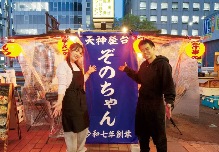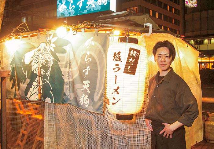 - 女性が長居できる場所を目指した屋台。目玉料理は「つくね3種盛り」で、約20種類から好きな味をチョイスできる。料理は“和”をテーマにしており、〆がラーメンではなく、生麺からつくった歯ごたえ抜群の「うどん」なのも特徴。