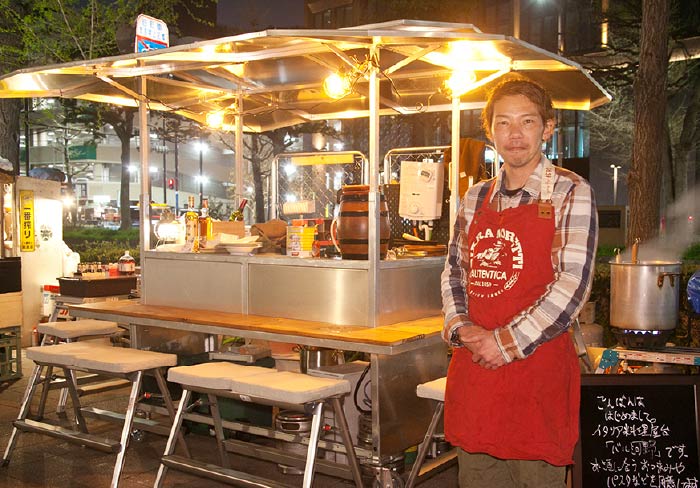 - 愛媛・松山市で予約のとれにくい人気イタリアン料理店を営んでいた店主がオープンした屋台。旬の野菜をつかった本格的なイタリアンで、男女問わず気軽に楽しめる。イチ押しは「ラムチョップ」と「季節のパスタ」。