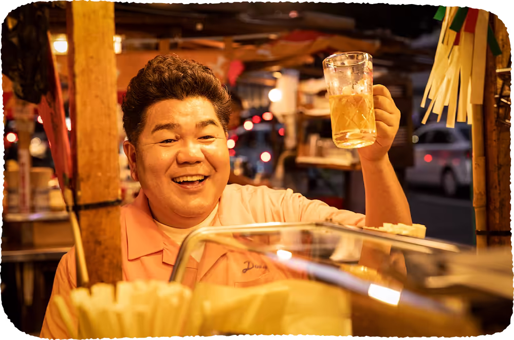 「あと一杯だけ!」といって屋台に行きますが、